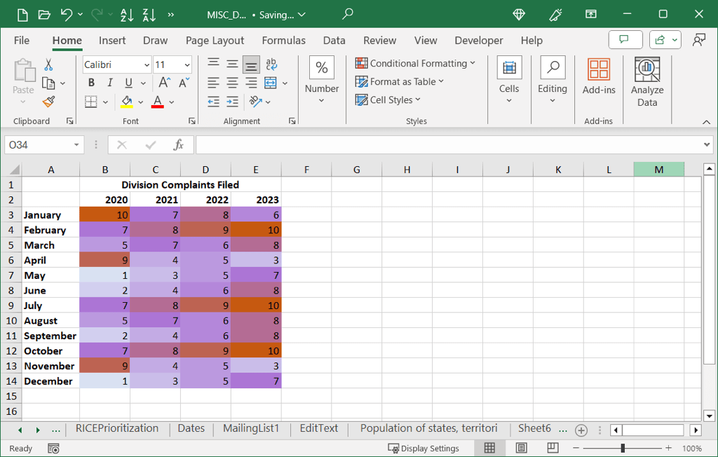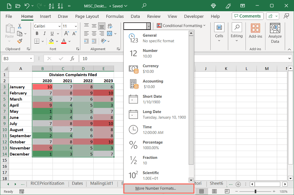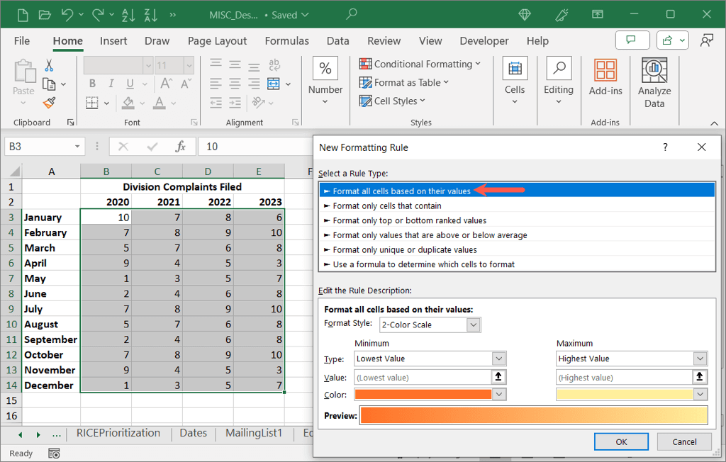Create a Heat Map With Conditional Formatting