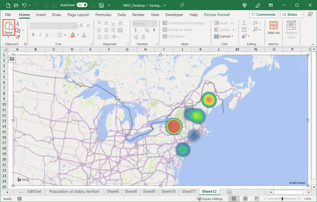 - You can then paste the image in your worksheet using Paste on the Home tab or the keyboard shortcut Ctrl + V.