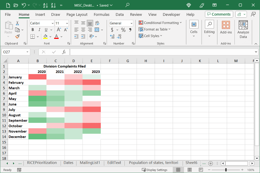 If you have data that you want to display graphically, but a chart isn’t quite right, try a heat map. You can create a heat map in Excel to present your data in an easy-to-read way.