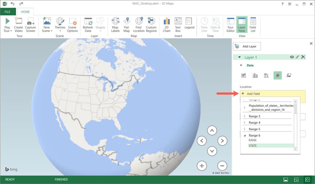 - Select Add Field in the Location box and choose the location data. For our example, this is State.