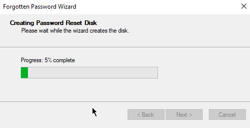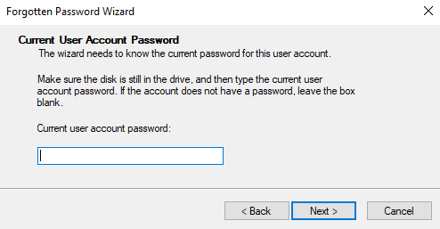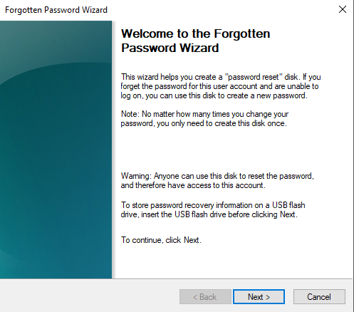 Clicking on Create a Password Reset Disk will open the Forgotten Password Wizard.