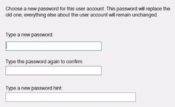 You will be prompted to type your new password and a password hint. When you’re done, click Finish.