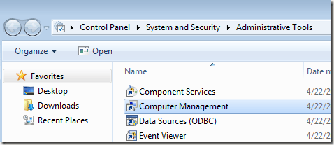 To mount a VHD in Windows, you have to open Computer Management by clicking on Start and typing in Computer Management in the search box. You can also go to Control Panel, then System and Security, then click on Administrative Tools and then click on Computer Management. If you’re in icon view, just click on Administrative Tools.