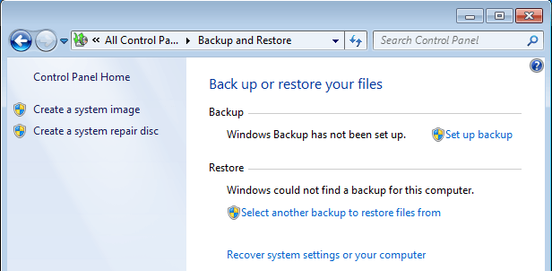 In Windows 7, Microsoft introduced a new way to backup your computer called Backup and Restore. Basically, it let you backup all your data to another location and gave you the option to create a system image also.