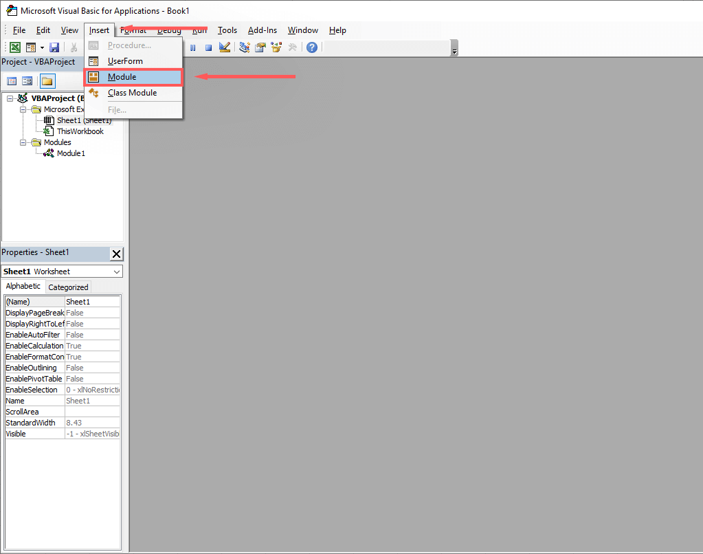 - Press Alt + F11 to open the pop-up Microsoft Visual Basic for Applications window.
