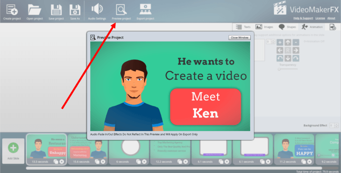 Before you render your project, you can preview it to see if you like all the changes you made. Look for and click the Preview project button in the top navigation.