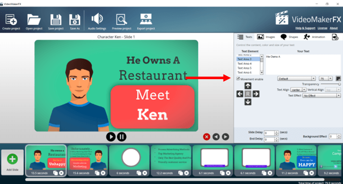 If you want to use slides in a different order, click on the side you want to move. Then click on the left or right arrows above the storyboard.