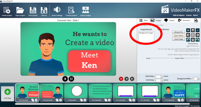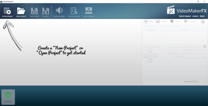 Start by clicking the + sign to start a new project. You will then be prompted to give your video a name. Let’s call this one Learn VideoMakerFX.