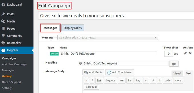 To learn more about how to use Display Rules, read: How to Use Display Rules to Customize When a Campaign Will Appear.