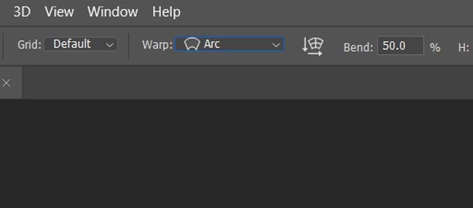 A grid will appear over your text, and there will be intersections where you can click and drag in order to manipulate the text. You’ll also see in the options bar there is a Warp dropdown. Click this and choose Arc. Your text will then curve.