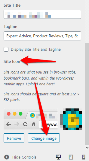 You can also change the site icon (favicon) on the same screen by going to the **Site Icon **section just below the **Site Title **fields. Click Change Image to insert your custom site icon.