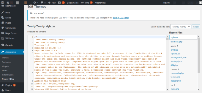 It’s not recommended for you to edit files in your theme even if you know how to write CSS or PHP. In fact, when you try to access the editor, WordPress will warn you about the action because of the consequences of editing pages directly, some of which may be irrevocable.