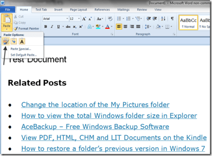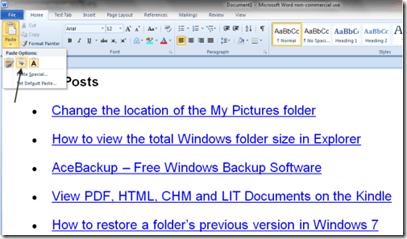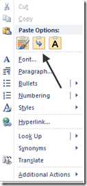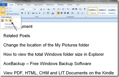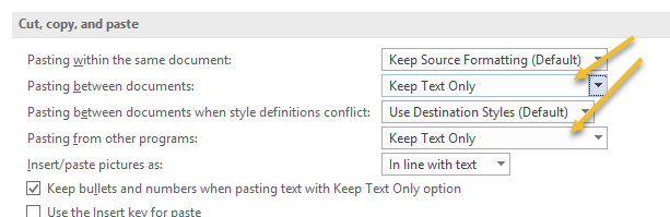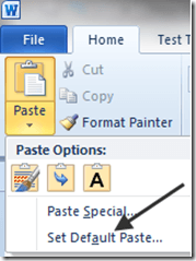 Setting defaults for when you paste something, is actually a bigger deal than it might seem. Say for example you have grown used to using Ctrl-C and Ctrl-V for copying and pasting stuff from websites into your Word documents; normally the default is to paste what has been copied in its natural state, i.e. with all the web formatting in place.