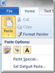 Microsoft has not been blind to this and did give us some options for cutting, copying and pasting in Word 2007 with the Paste button on the main ribbon. Recognizing that what they’d done so far wasn’t enough, Microsoft went a step further in newer versions of Word by giving users a much better preview of what they’ll get when choosing a particular option.