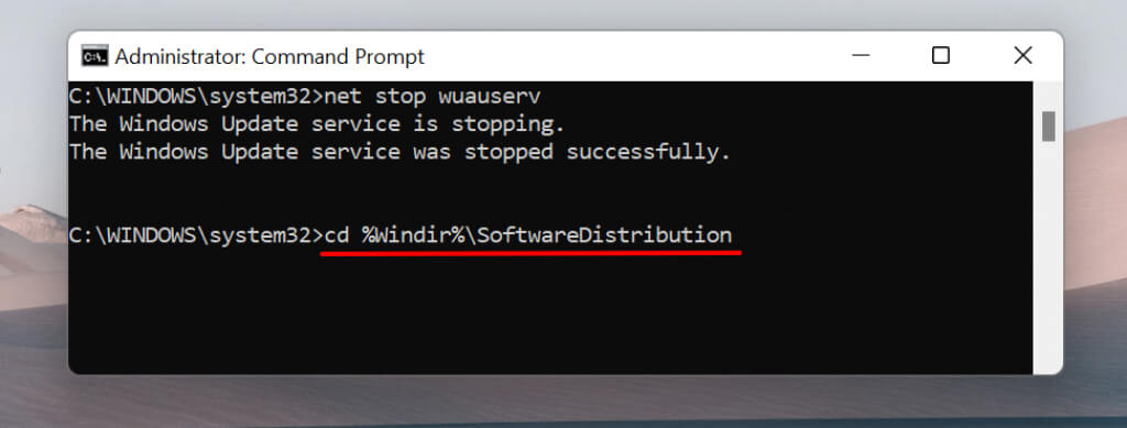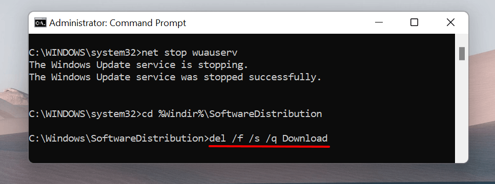 This method entails using Command Prompt to delete Windows Update cache files in your PC’s Software Distribution folder.