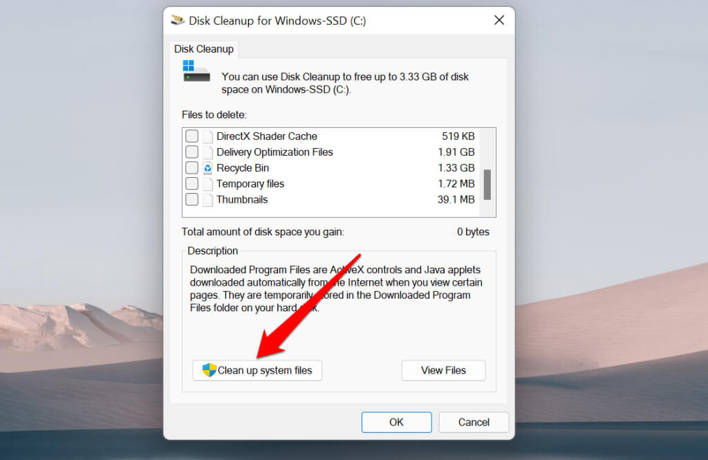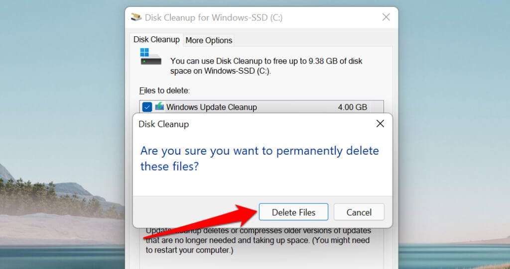 Disk Cleanup is a built-in app for freeing disk space on Windows devices. It’s a compilation of unique tools for removing different file types eating up your PC’s storage space. You can use Disk Cleanup to delete temporary app files, empty your PC’s Recycle Bin, redundant internet files, etc.