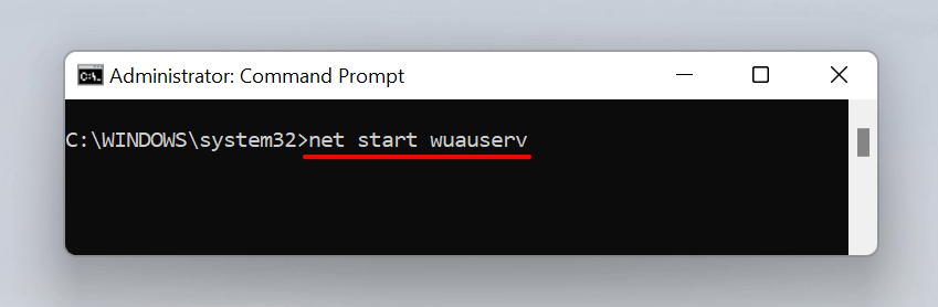 - Type or paste net start wuauserv in the console and press Enter to restart the Windows Update service.