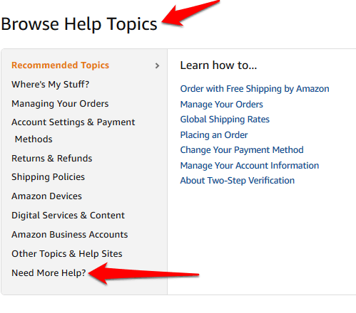 - Scroll down and click **Browse Help Topics > Need More Help?**