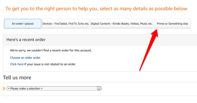 - At the top of the customer support page, click **Prime or Something Else**.