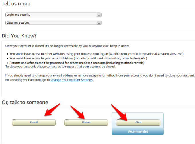 Amazon has since removed that old way of closing accounts from its website. Going forward, you’ll need to contact the Amazon customer support team if you want to close or delete your account for good.Here are the steps you’ll need to take to get started: