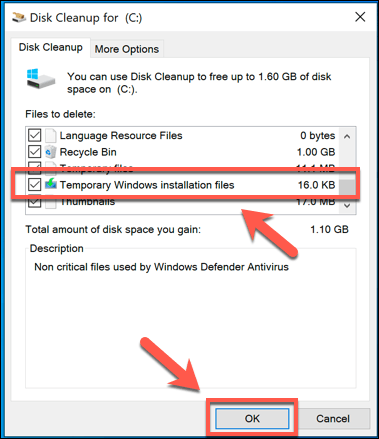 This will remove the Windows.old folder, restoring several gigabytes of space in the process. You won’t be able to restore the older Windows installation once you do this, however, so make sure that any updates or new installations are working correctly before you proceed.