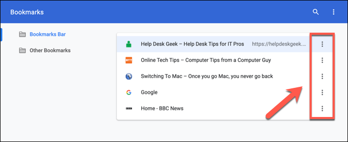 If you want to remove bookmarks that aren’t on your bookmarks bar in Chrome, or if you’re looking to remove more than one bookmark from the bookmarks bar, you’ll need to use the bookmark manager.