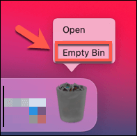 - The file will move to the Trash/Bin folder. Right-click the **Trash **icon on your Dock bar, then select **Empty Trash** or **Empty Bin** (depending on your locale) to remove the file.