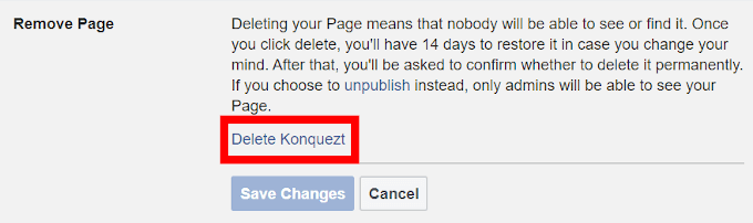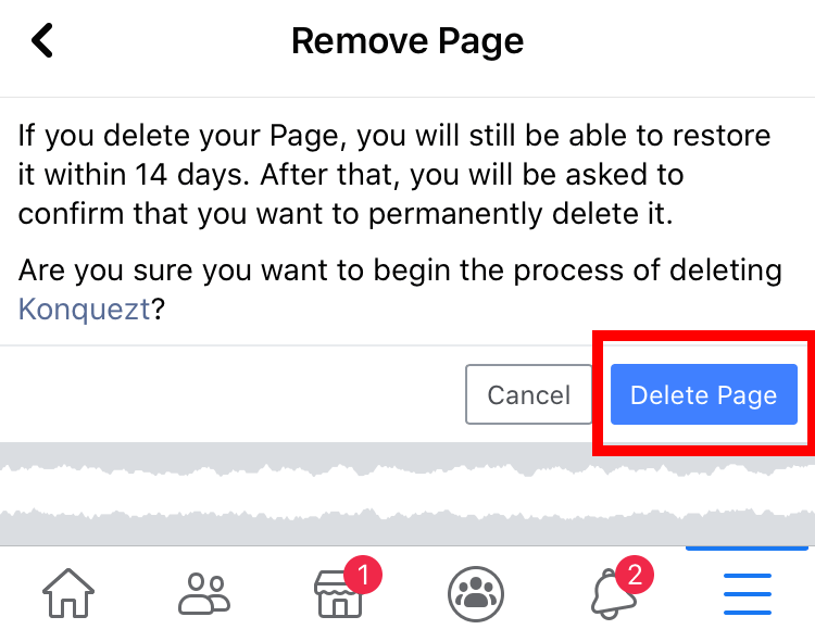Take note that Facebook takes up to fourteen days to delete your Page.