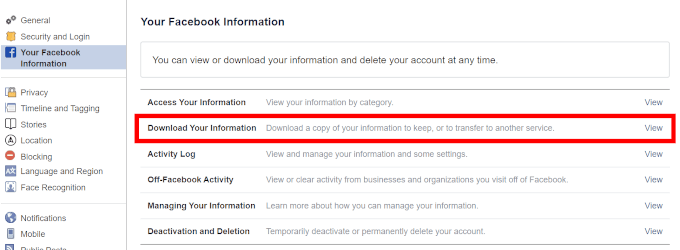 - Click over to the “Your Facebook Information” tab, and click Deactivation and Deletion.