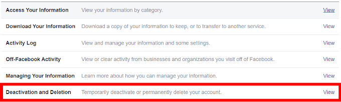 - A quick refresher to avoid scrolling up: **Settings **> “Your Facebook Information” tab > Deactivation and Deletion.