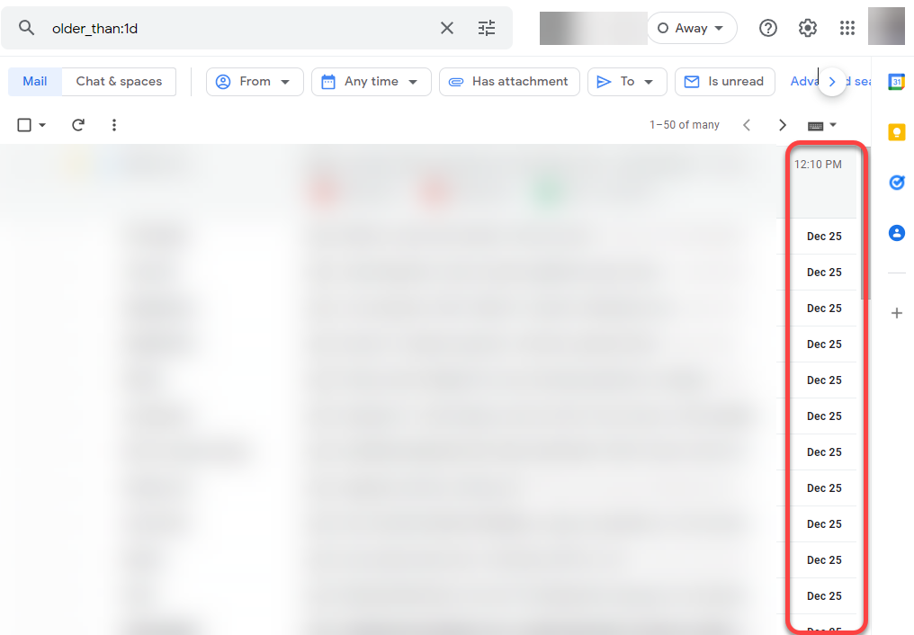 Alternatively, you can use the “older_than” parameter. Again, say you want to delete all emails received before December 25, 2021 on December 26, 2021. You can use the following search query: