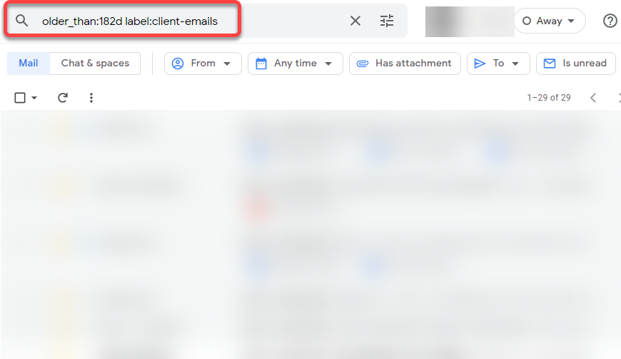 Say you want to delete emails older than six months in a label called “client emails.” Here’s the parameter you can use: