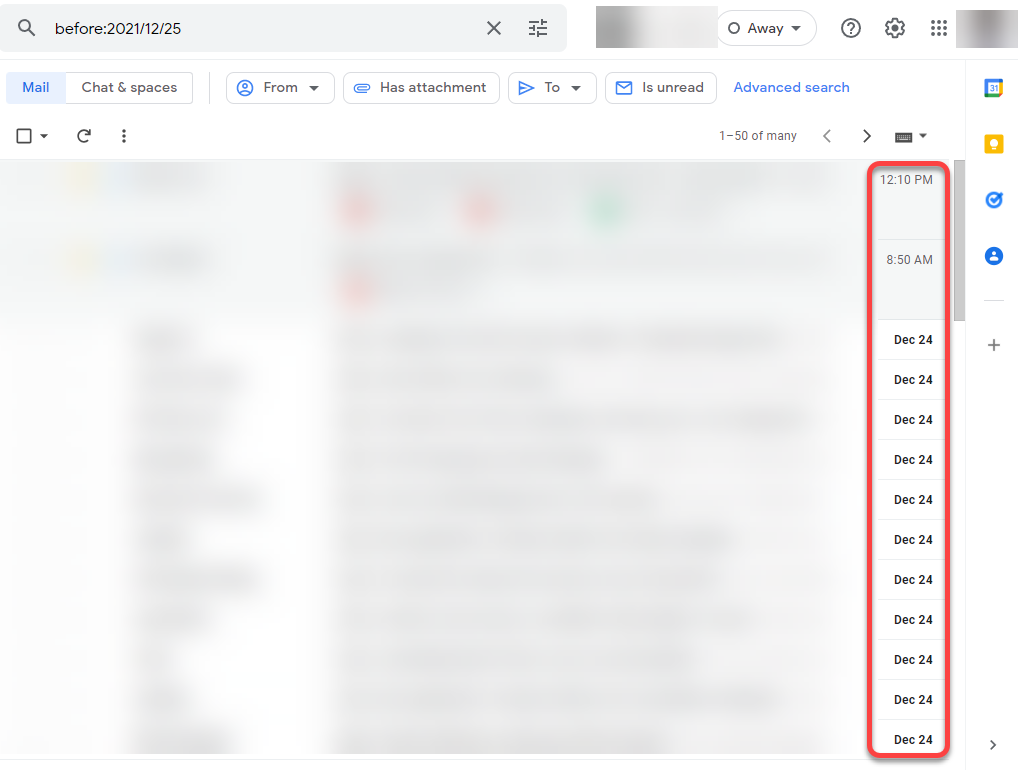 Once you’ve used either of those search queries, you’ll see all emails received before the specified date.