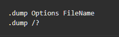 Replace FileName with an appropriate name for the dump file and the “?” with an f. Make sure that the “f” is lowercase or else you’ll create a different kind of dump file.