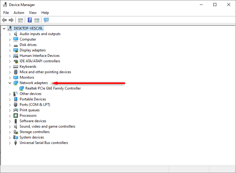 - In the Device Manager, double-click Network Adapters to expand the section.