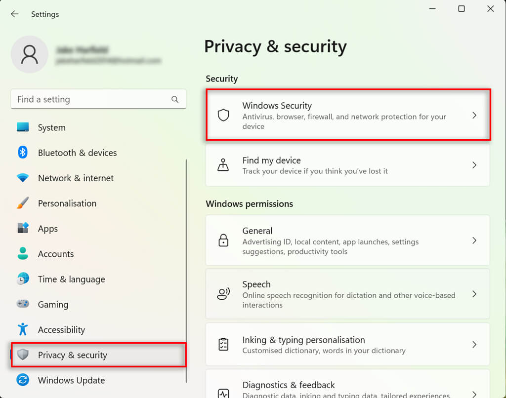 - Select Privacy & security.