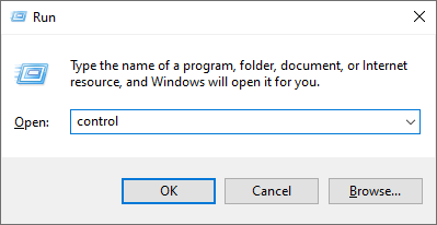 - Type control and press Enter to open the Control Panel.