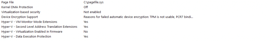 - In the System Summary tab, scroll down to the bottom and check for the following entry: