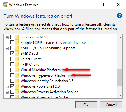 - Select Turn Windows features on or off in the left-hand menu. * Scroll down and uncheck the checkbox next to Hyper-V, Windows Hypervisor Platform, and Virtual Machine Platform.