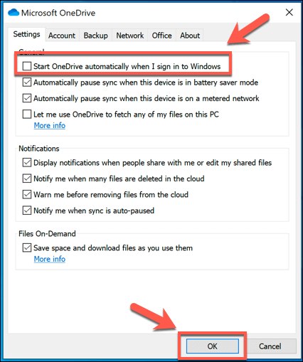 Once disabled, OneDrive won’t load when you next restart up your PC. With file syncing and automatic start-up disabled, OneDrive is as good as disabled, but you can go even further by unlinking your account.
