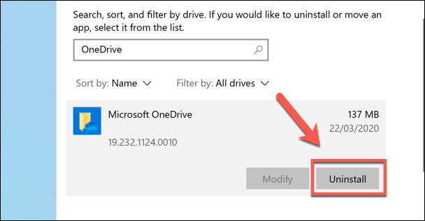 OneDrive usually comes pre-installed with Windows 10, and some versions of Windows don’t allow you to uninstall it. If the option is available to you, however, you can choose to disable OneDrive completely by uninstalling it from your PC.