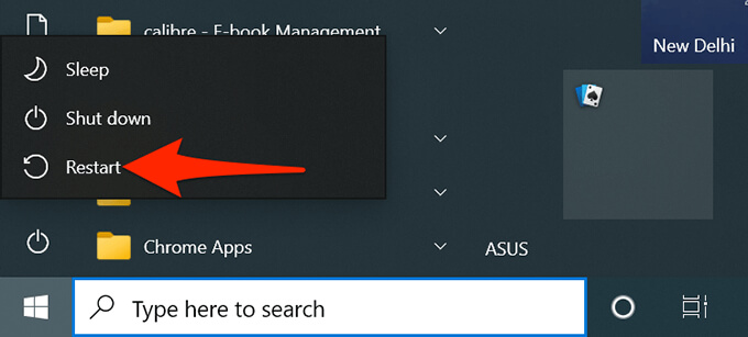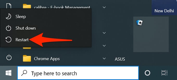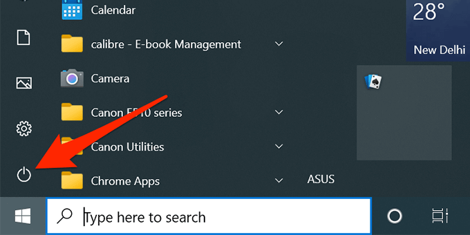 - Press and hold down the **Shift** key on your keyboard and select **Restart** in the power icon menu.