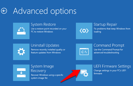 - From the **Advanced options** screen, select the **UEFI Firmware Settings** option.