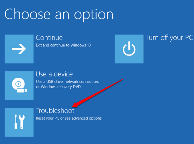 - Wait for a menu to appear on your screen. When it does, select **Troubleshoot** from it.