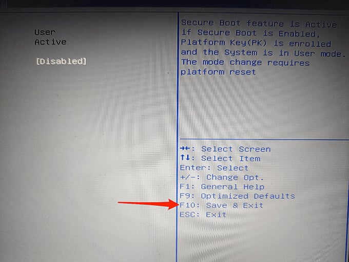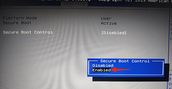 If you’ve finished your tasks and you want to re-enable Secure Boot, visit the same BIOS screen to turn the feature off.