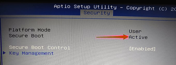 - On the Secure Boot screen, the **Secure Boot** status should say **Active**. This means the option is currently enabled on your PC.
