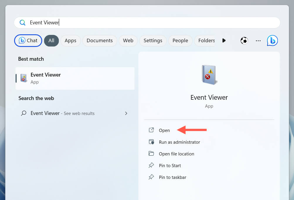 - Right-click the Start button and select Event Viewer.