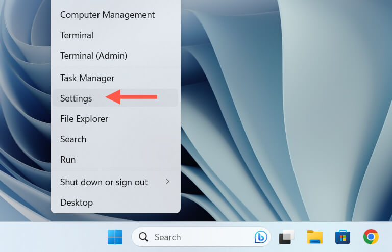 - Right-click the Start button and select Settings.