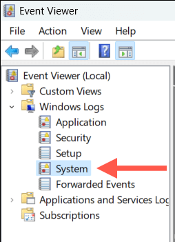 - Expand Windows Logs and select System on the sidebar.