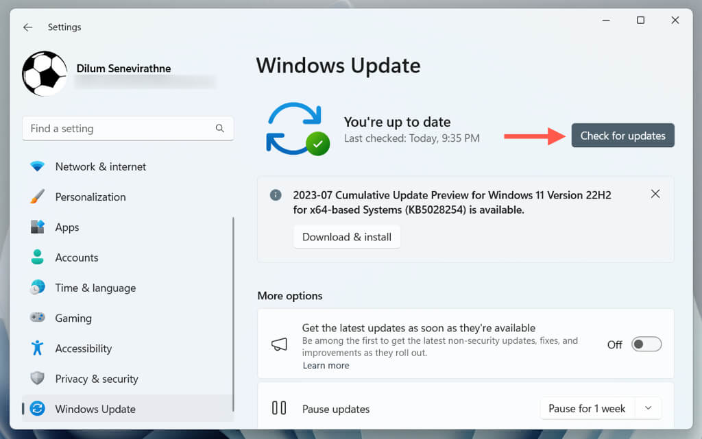 According to Microsoft, newer versions of Microsoft Defender Antivirus—Version 1.0.2306.10002 and later—fix the “Local Security Authority protection is off” error in Windows 11. Hence, installing all pending updates through Windows Update is the best way to deal with the issue.